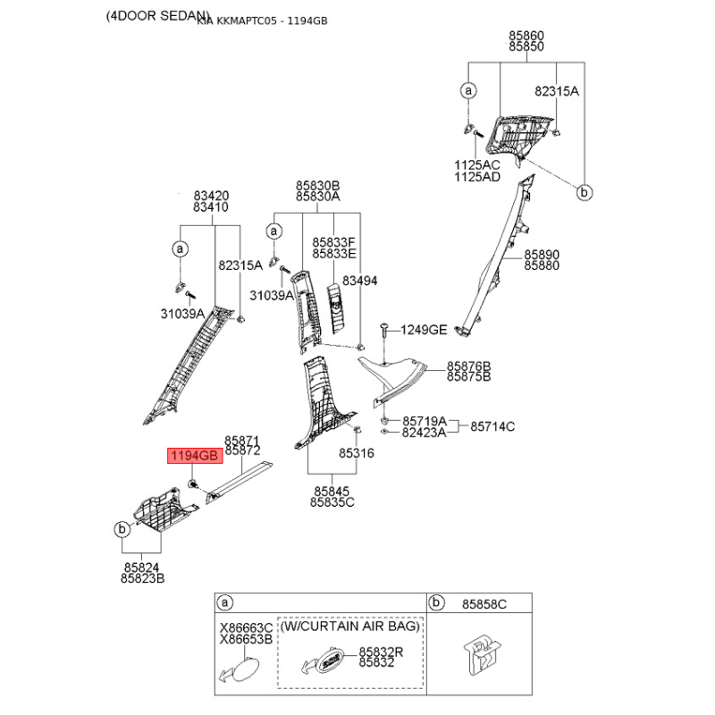 Пошук деталей можна виконати за оригінальним кодом KGJ2168885BXI.