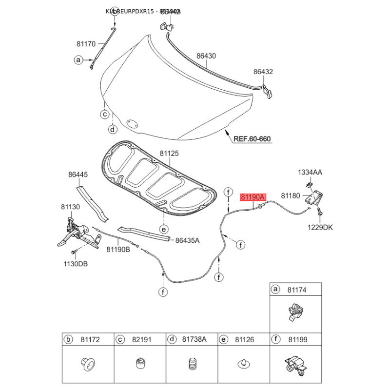 Тросик замку капота 81190-4X000 Mobis