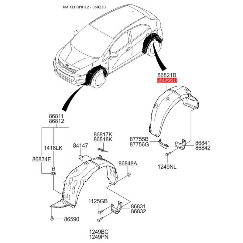 При отриманні замовлення перевіряйте комплектацію товару Обшивка (підкрилок), колісна ніша права 86822-1W000 Mobis.