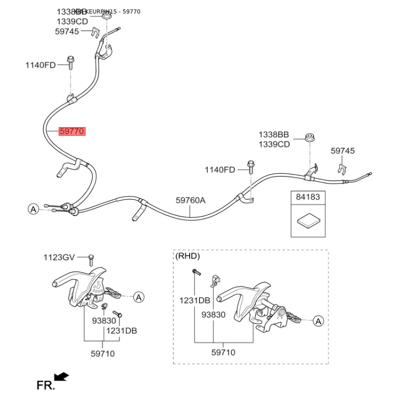 Трос стоянкової гальмівної системи правий 59770-1W000 Mobis