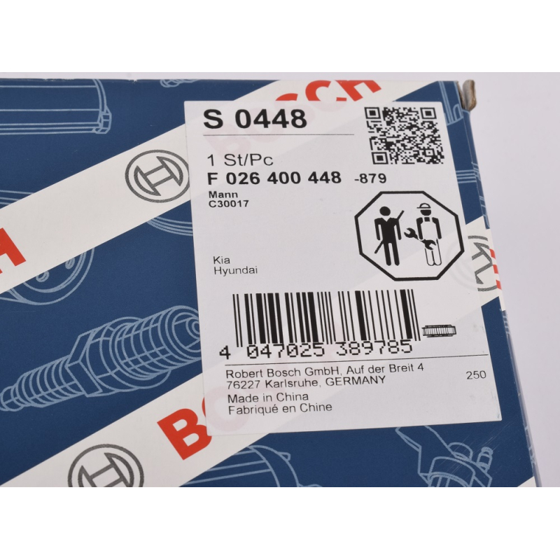 Оригінальний код F 026 400 448 повністю збігається з каталожними номером виробника BOSCH.