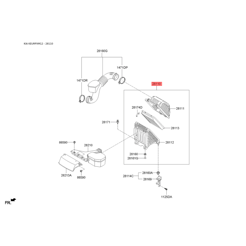 Якщо у вас виникли питання щодо Кришка, корпус повітряного фільтра 28110-2W300 Mobis з номером 281102W300, зв'яжіться з нашим консультантом.
