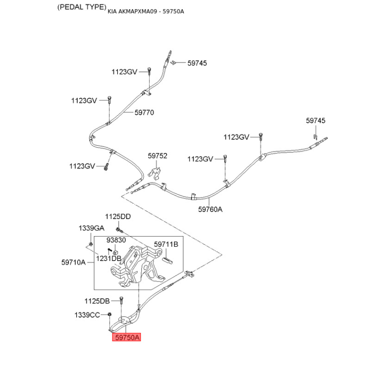 Якщо у вас виникли питання щодо Трос стоянкової гальмівної системи 59750-2P500 Mobis з номером 597502P500, зв'яжіться з нашим консультантом.