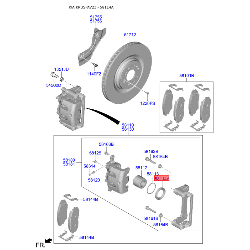 Пошук деталей можна виконати за оригінальним кодом 581143J000.