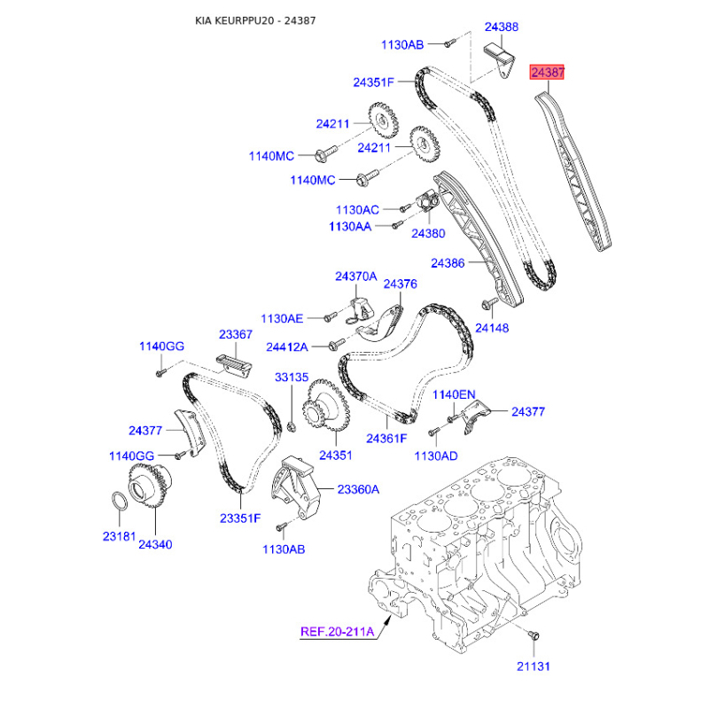 Комплект ланцюга приводу розподільного валу 24387-4A100 Mobis