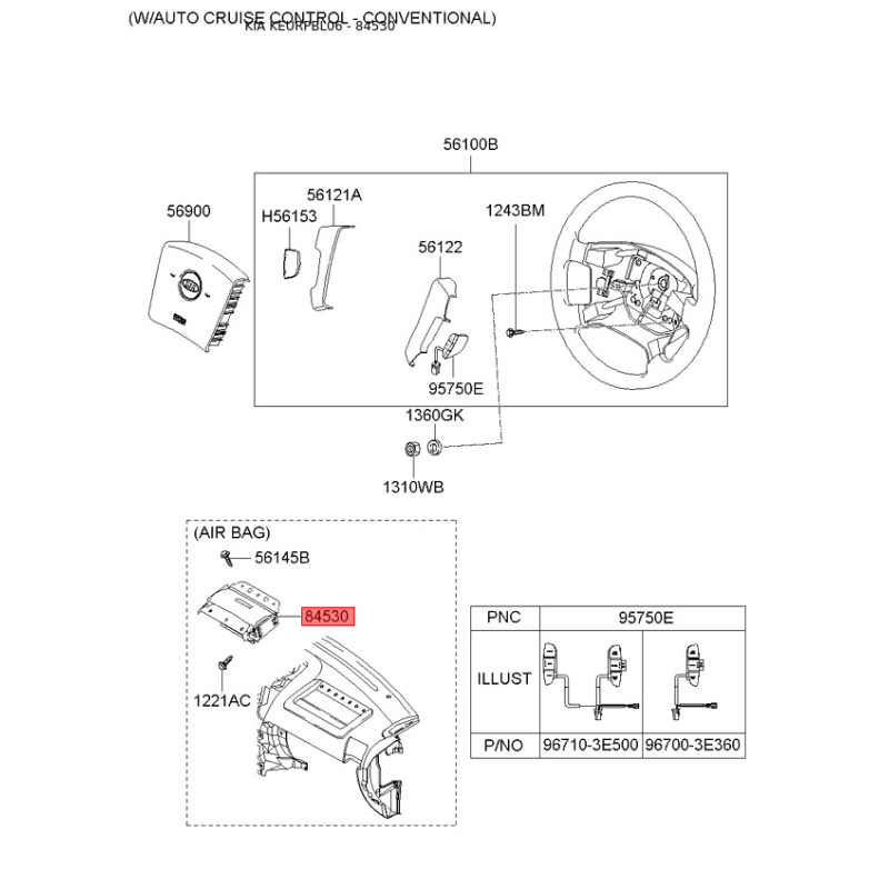 Якщо у вас виникли питання щодо Подушка безпеки пасажирська на передню панель 84500-3E600 Mobis з номером 845003E600, зв'яжіться з нашим консультантом.