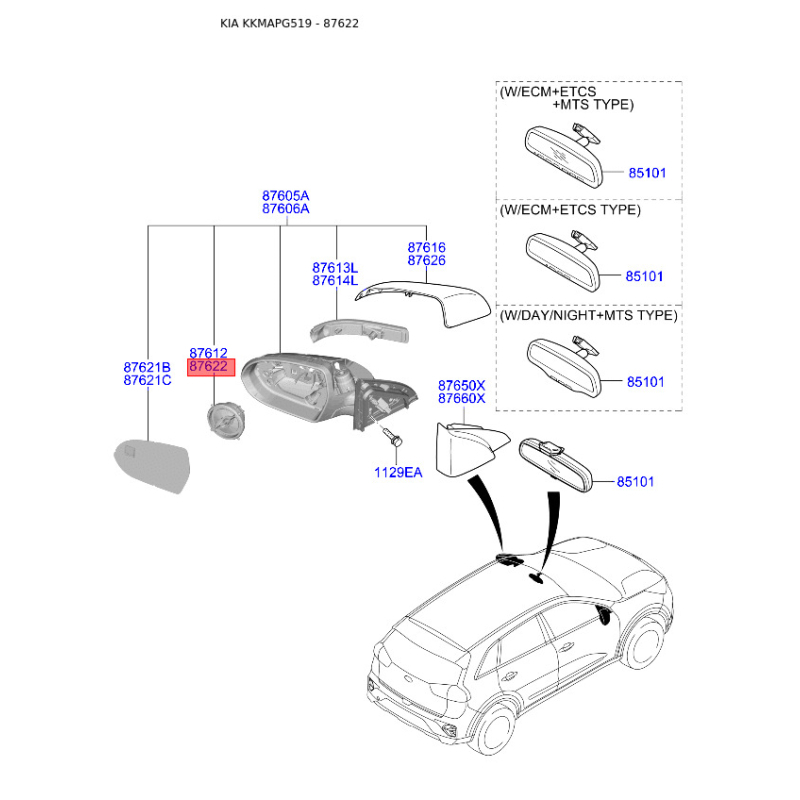 Пошук деталей можна виконати за оригінальним кодом 87622G2500.