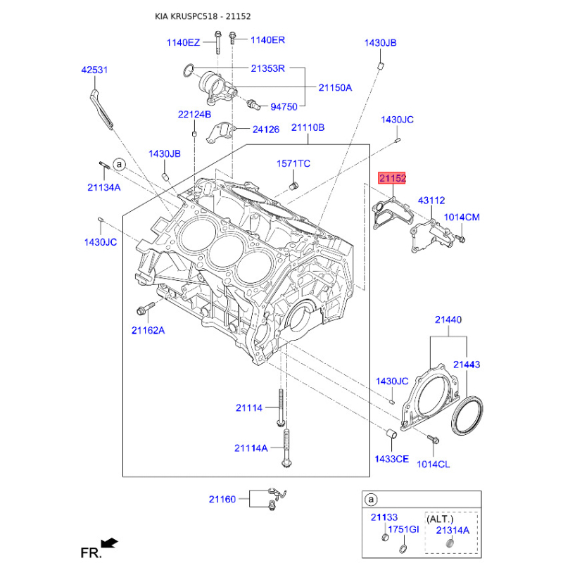 Кришка картера, блок-картер двигуна 21152-3CAA1 Mobis