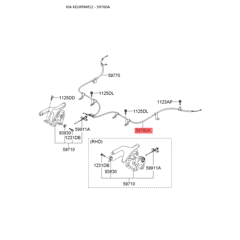 При отриманні замовлення перевіряйте комплектацію товару Трос стоянкової гальмівної системи лівий 59760-2K000 Mobis.