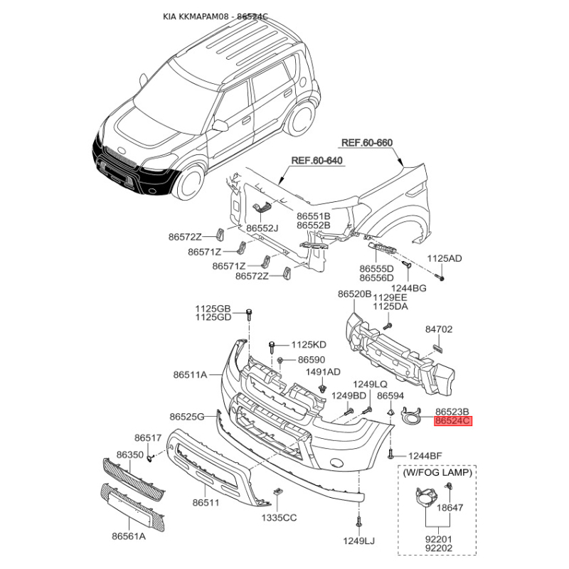 При отриманні замовлення перевіряйте комплектацію товару Облицювання, протитуманна фара переднє праве 86516-2K000 Mobis.