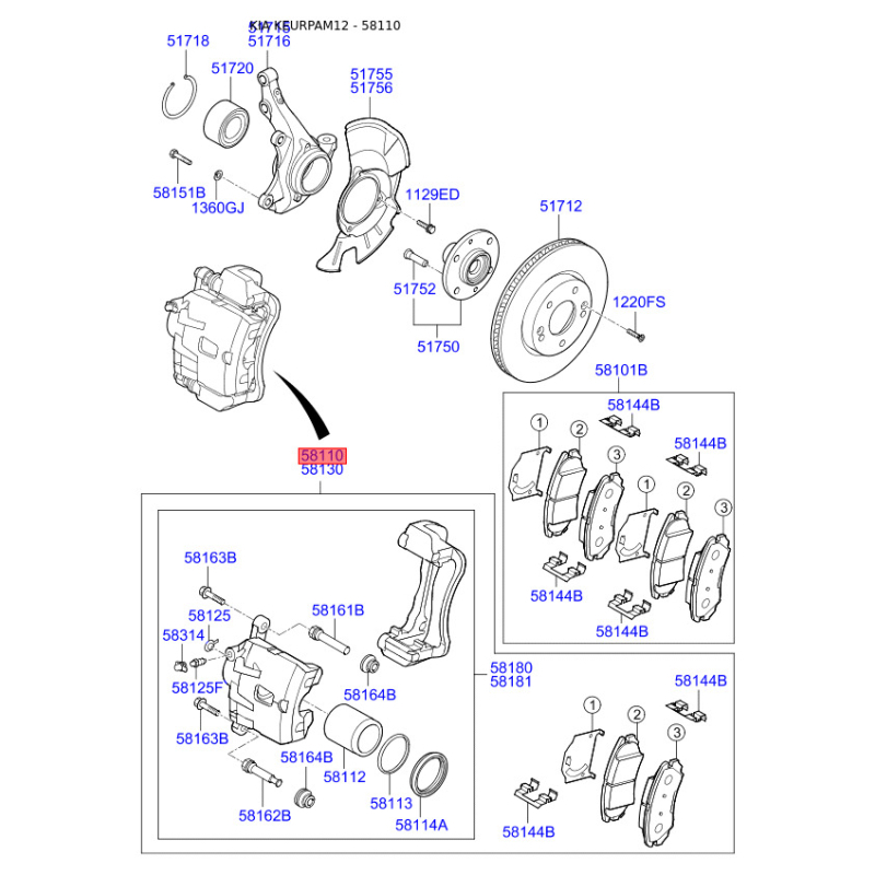 Пошук деталей можна виконати за оригінальним кодом 581102K100.