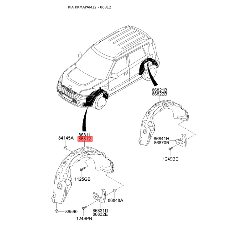 Якщо у вас виникли питання щодо Обшивка (підкрилок), колісна ніша права 86812-2K500 Mobis з номером 868122K500, зв'яжіться з нашим консультантом.