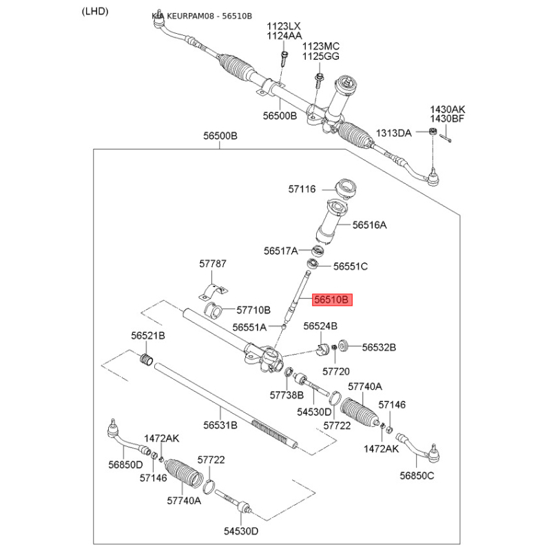 При отриманні замовлення перевіряйте комплектацію товару Вал шестерня (черв'як) рульового механізму 56512-2K100 Mobis.