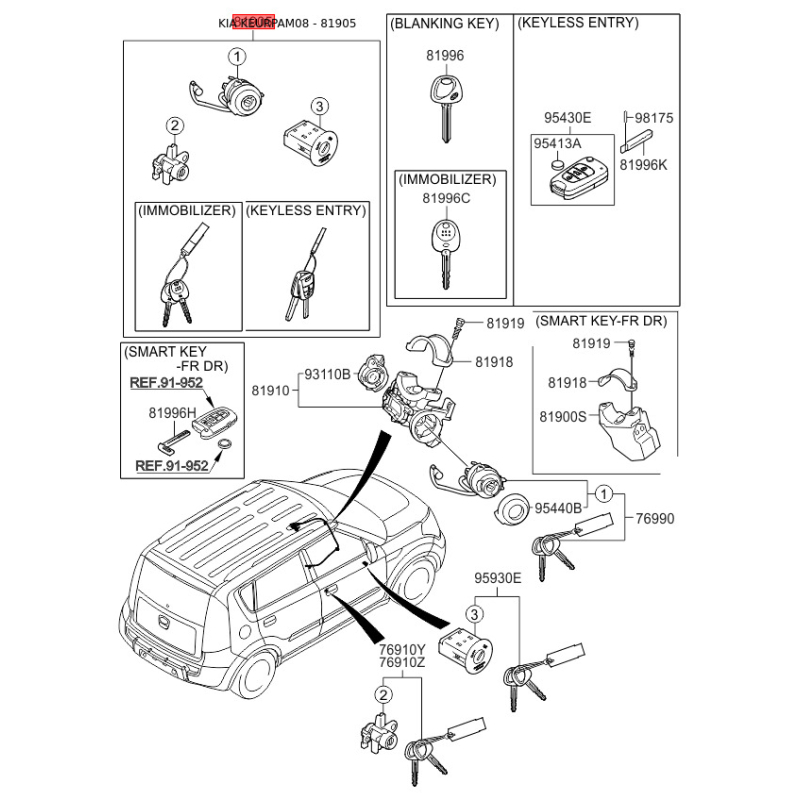 Замок (циліндр) запалювання з ключами 81905-2K290 Mobis