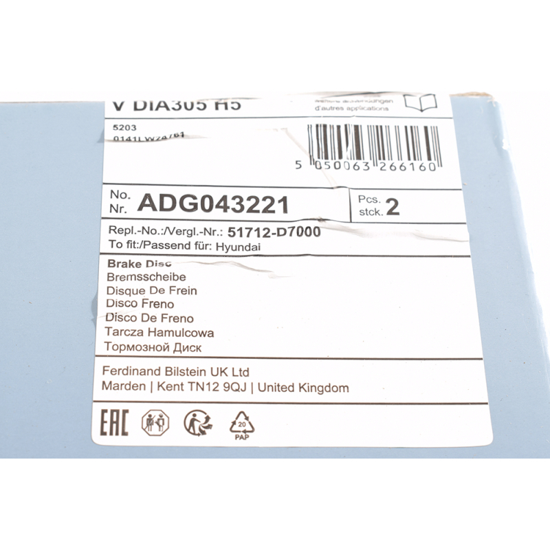 Оригінальний код ADG043221 повністю збігається з каталожними номером виробника Blue Print.