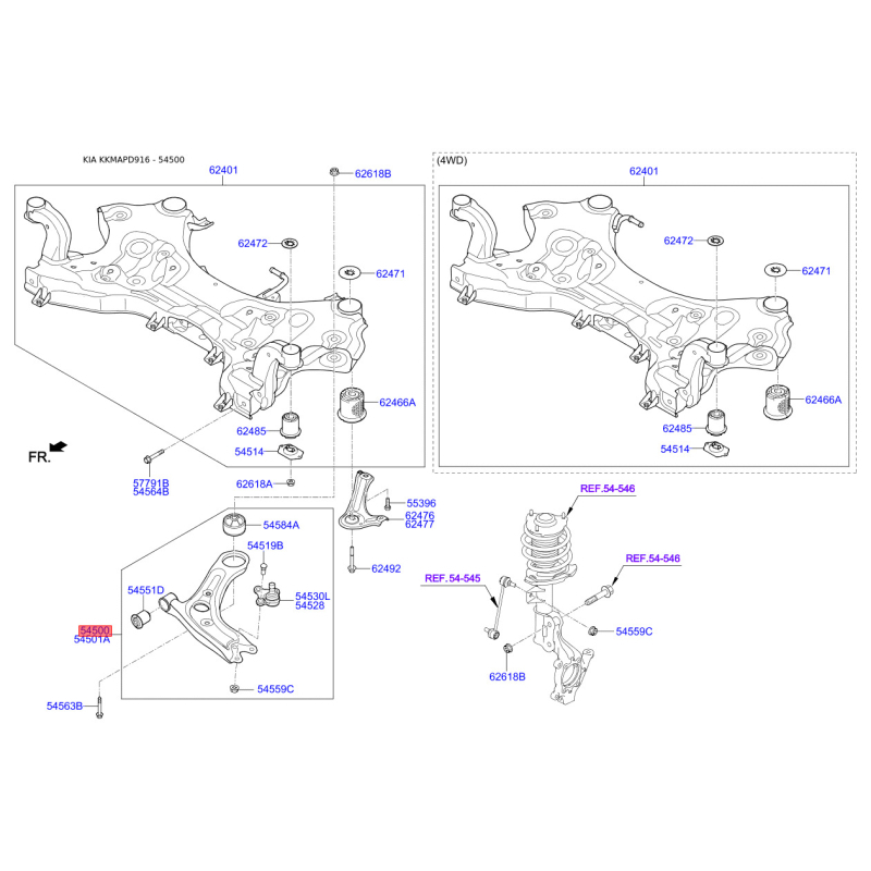 Пошук деталей можна виконати за оригінальним кодом 54500D3000.