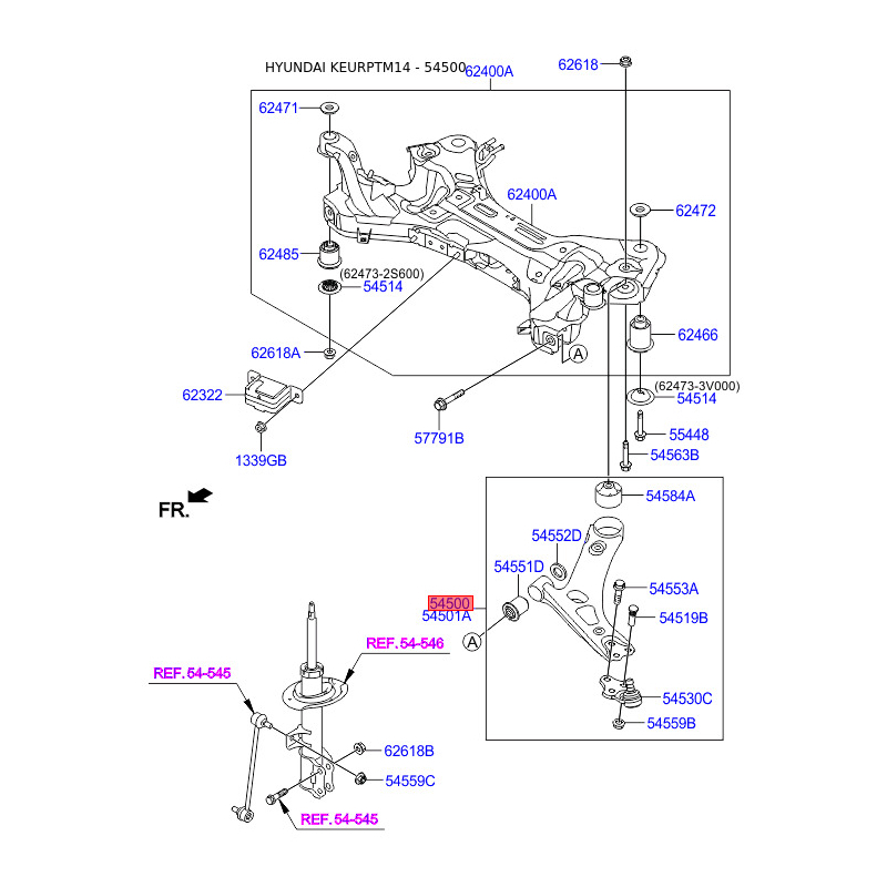 Оригінальний код 545002S500 повністю збігається з каталожними номером виробника Mobis.