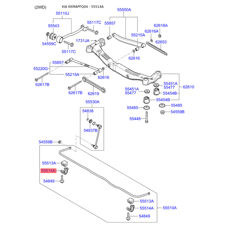 При отриманні замовлення перевіряйте комплектацію товару Кронштейн заднього стабілізатора лівий 55514-2E000 Mobis.