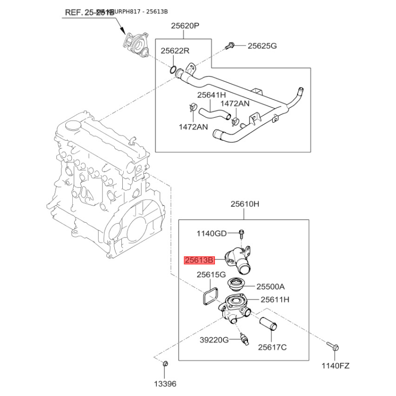Термостат охолоджувальної рідини 25613-2A700 Mobis - 256132A700 Артикул 256132A700