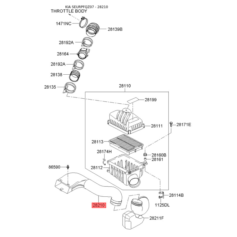 При отриманні замовлення перевіряйте комплектацію товару Рукав повітрозабірника, повітряний фільтр 28210-2E100 Mobis.
