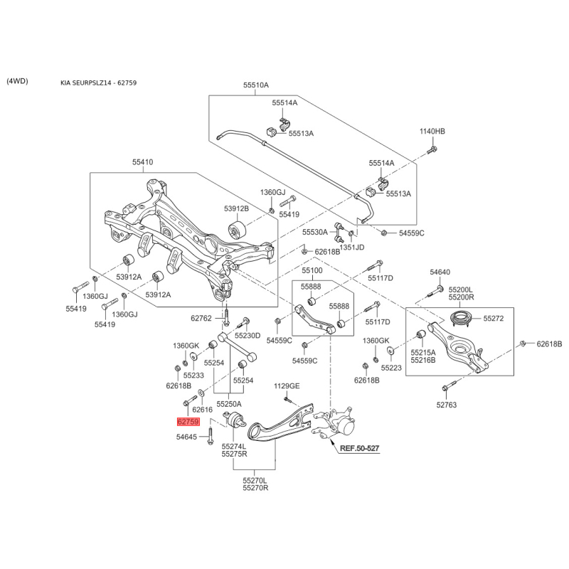 Болт задньої маточини та важеля 62617-2S000 Mobis