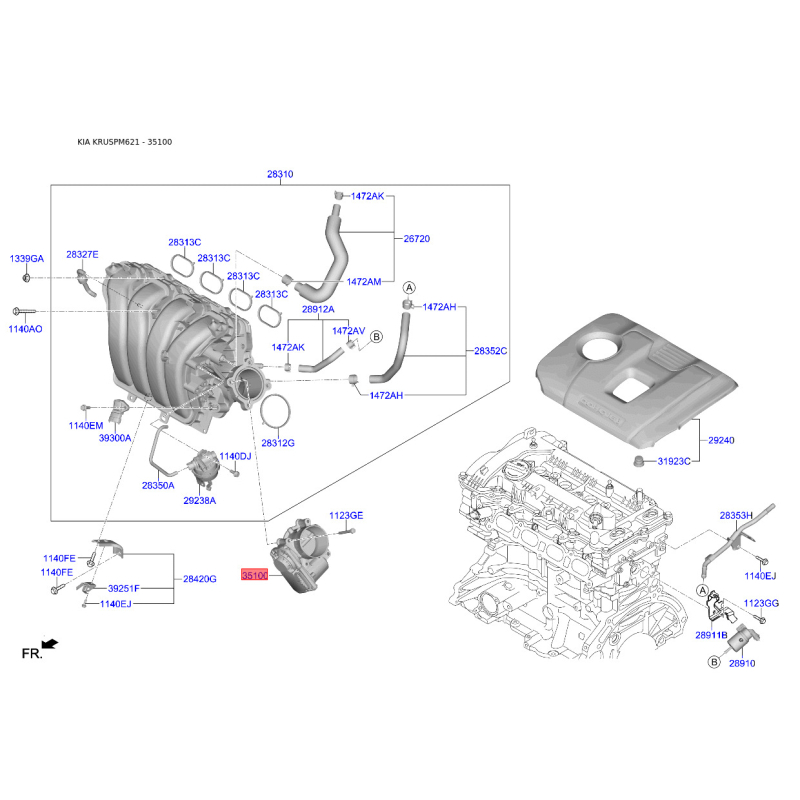 Пошук деталей можна виконати за оригінальним кодом 351002E100.