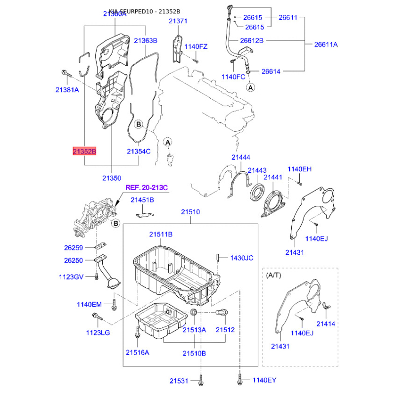 При отриманні замовлення перевіряйте комплектацію товару Кришка захисна ременя розподільчого вала нижня 21352-23000 Mobis.