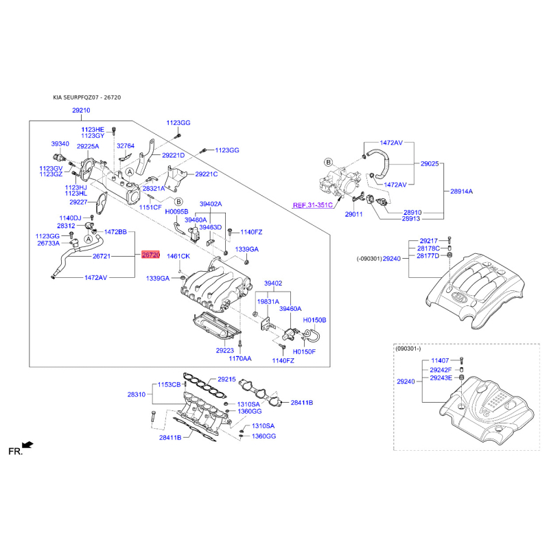 При отриманні замовлення перевіряйте комплектацію товару Патрубок дросельної заслінки 26720-23650 Mobis.
