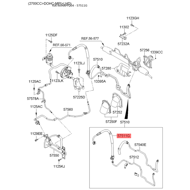 Гідравлічний шланг, кермо 57511-2E100 Mobis
