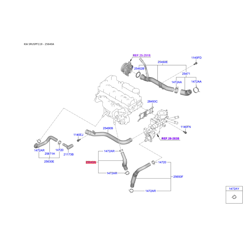 При отриманні замовлення перевіряйте комплектацію товару Шланг (патрубок) системи охолодження 25640-2F000 Mobis.