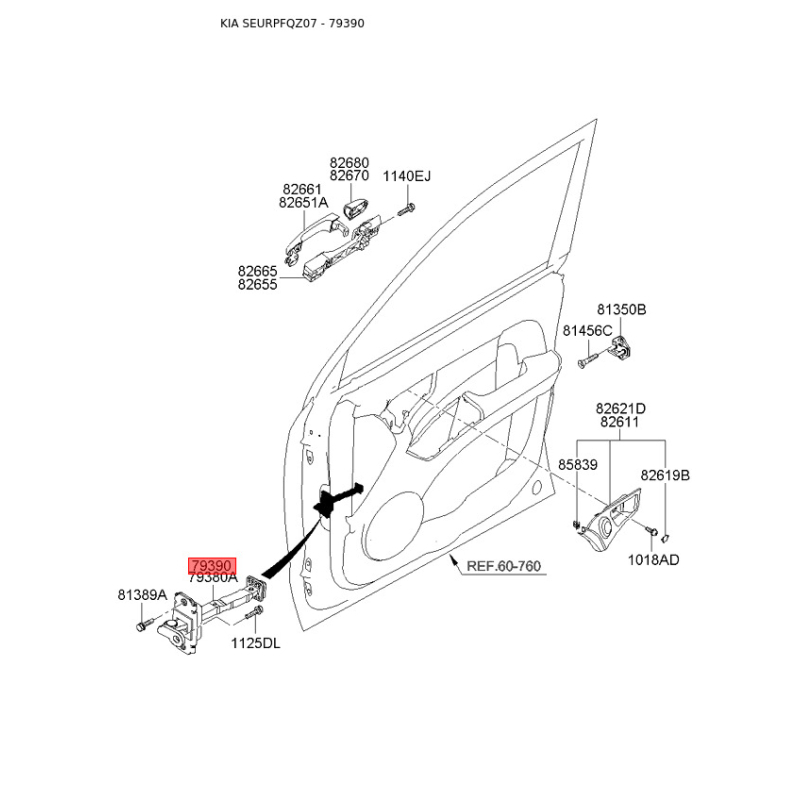 Якщо у вас виникли питання щодо Петля бічних дверей права 79390-1F000 Mobis з номером 793901F000, зв'яжіться з нашим консультантом.
