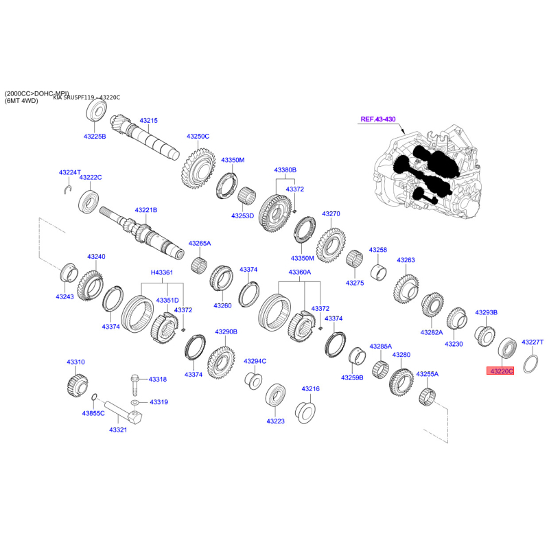 Підшипник вторинного вала передній задній 43226-26000 Mobis - 4322626000 Артикул 4322626000