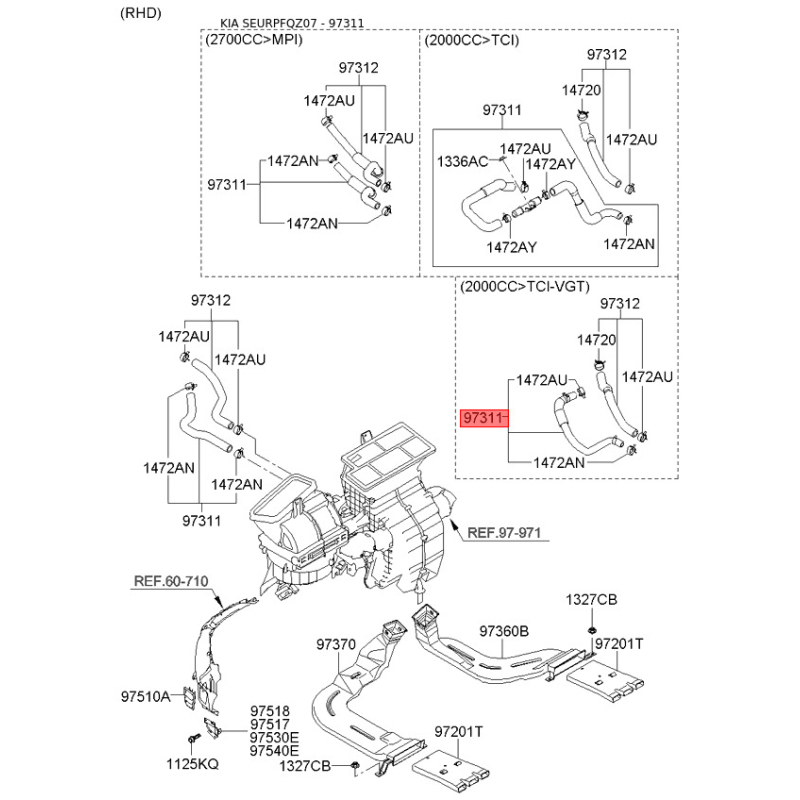 При отриманні замовлення перевіряйте комплектацію товару Шланг, теплообмінник - опалення 97311-2E000 Mobis.