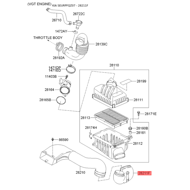При отриманні замовлення перевіряйте комплектацію товару Рукав повітрозабірника, повітряний фільтр 28211-2E100 Mobis.