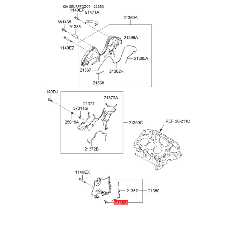 При отриманні замовлення перевіряйте комплектацію товару Кільце ущільнювальне передньої кришки мотора нижнє 21353-37500 Mobis.