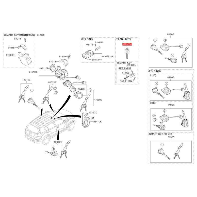 Ключ (вставка) дверей у брелок 81996-2G050 Mobis