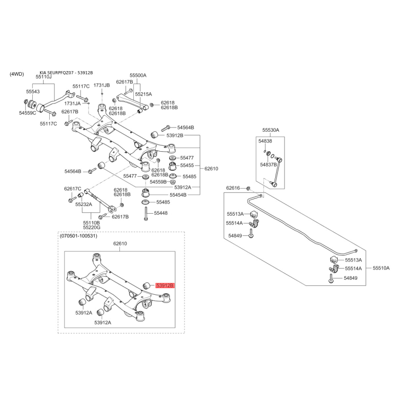 При отриманні замовлення перевіряйте комплектацію товару Сайлентблок заднього підрамника (задньої балки) задній для редуктора 4WD 53912-2E400 Mobis.