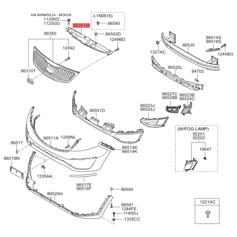 При отриманні замовлення перевіряйте комплектацію товару Решітка радіатора верхня 86361-3W000 Mobis.