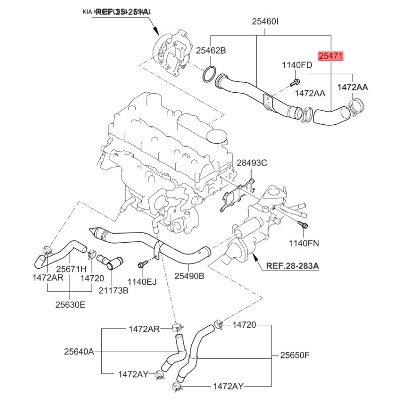 При отриманні замовлення перевіряйте комплектацію товару Шланг (патрубок) системи охолодження 25470-2F000 Mobis.