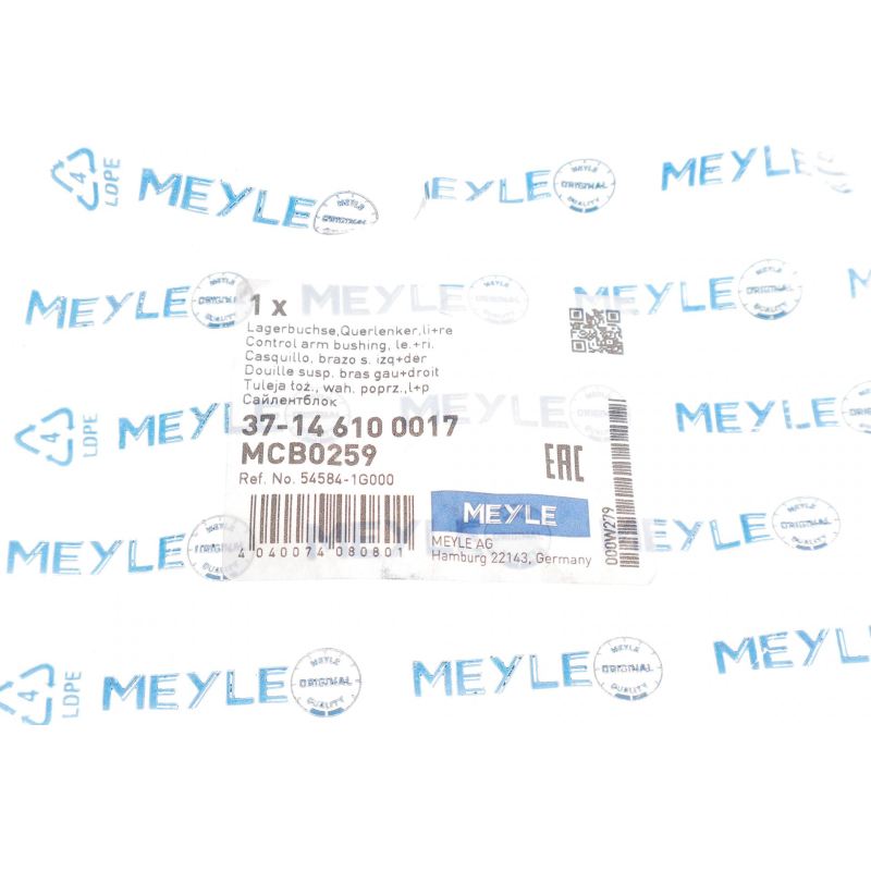 Оригинальный код 37-14 610 0017 полностью совпадает с каталожным номером производителя MEYLE.