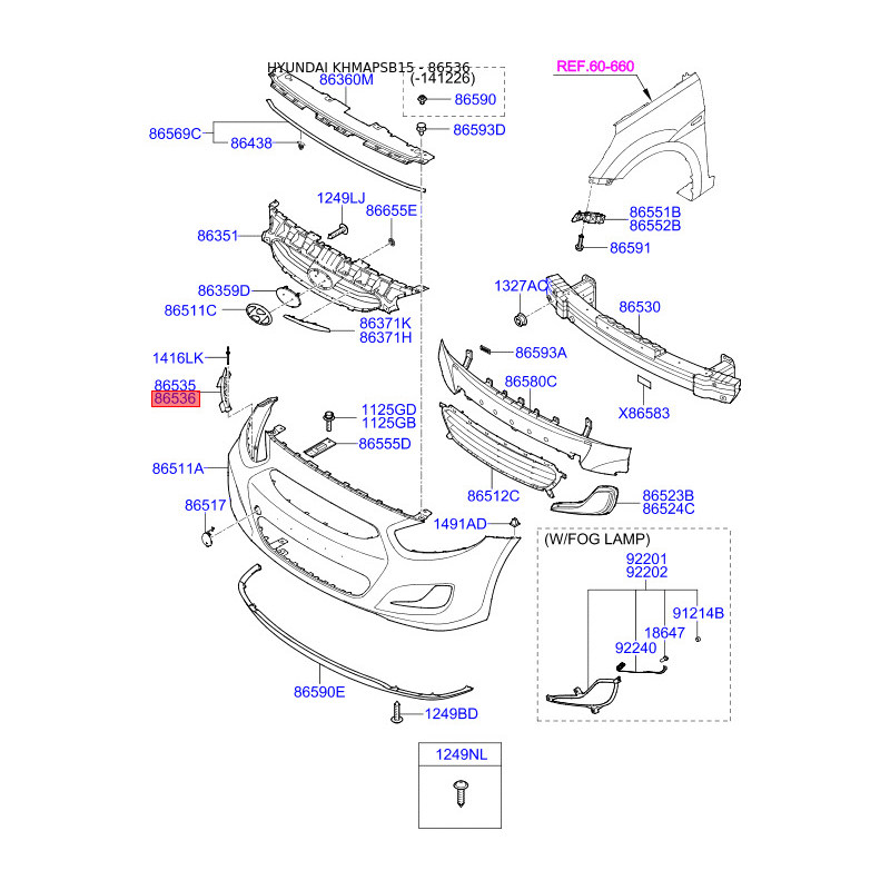 Кронштейн, буфер правый 86584-1R000 Mobis