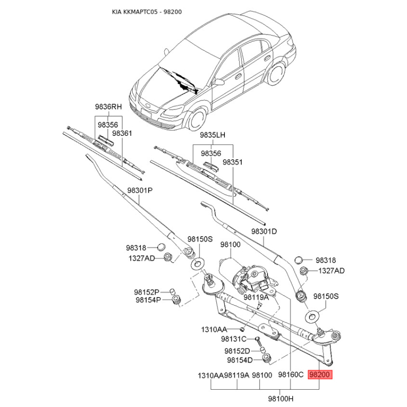 Привод стеклоочистителя, система очистки окон 98120-1G000 Mobis