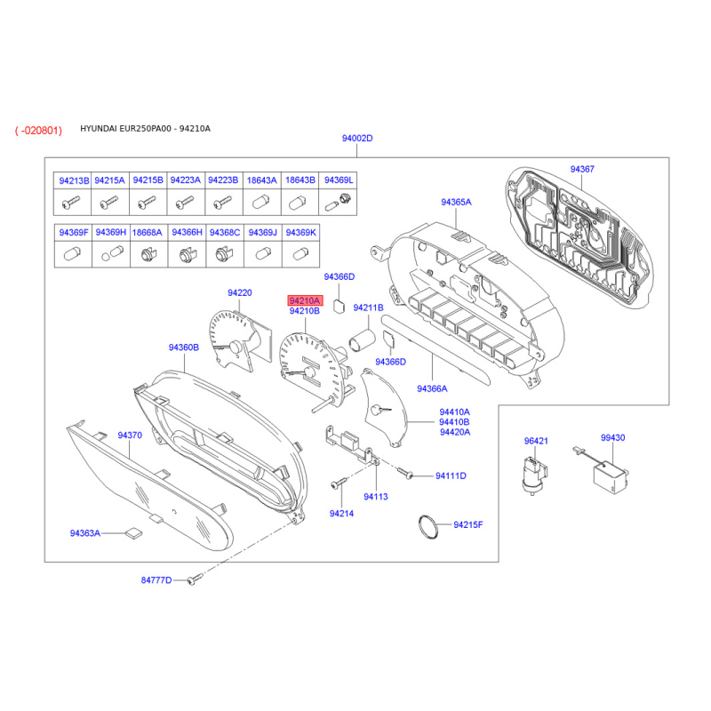 Панель приборов (щиток), в сборе и комплектующие 94160-25700 Mobis