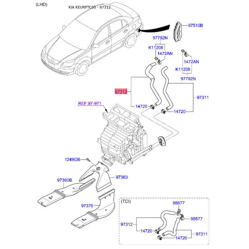 Перед монтажом запчасти проверьте оригинальный код 973121G100.