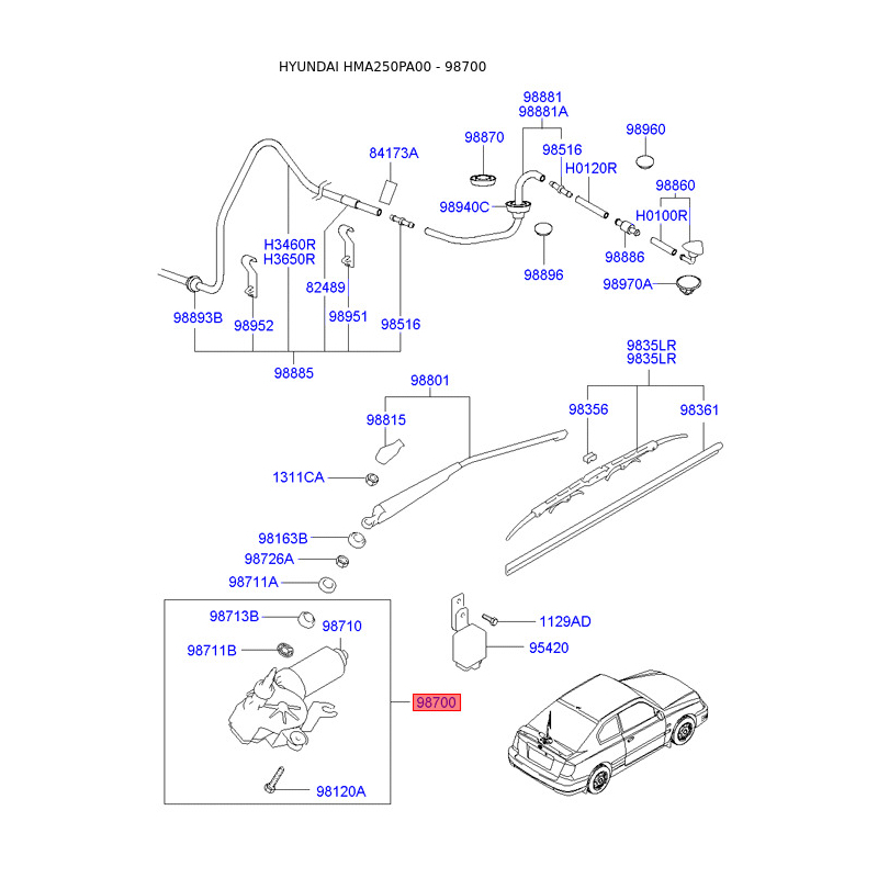 Оригинальный код 9870025000 полностью совпадает с каталожным номером производителя Mobis.