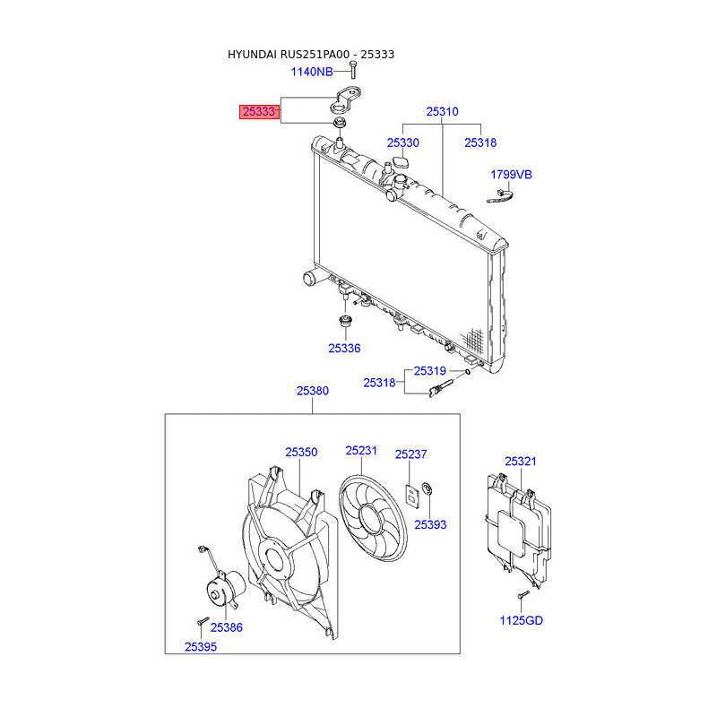 Крепление радиатора верхнее 25333-25000 Mobis