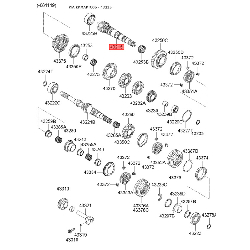 При получении заказа проверяйте комплектацию товара Вал вторичный МКПП 43215-23130 Mobis.