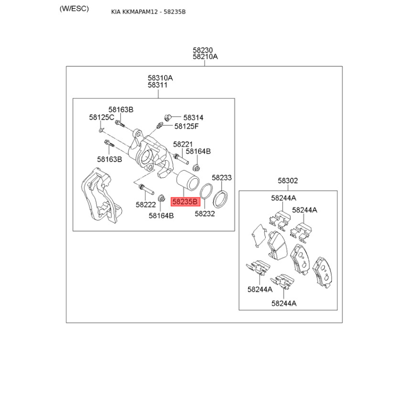 Поиск деталей можно выполнить по оригинальному коду 582352H000.
