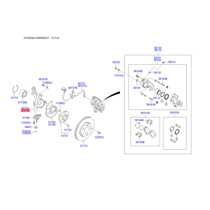 Поиск деталей можно выполнить по оригинальному коду 517162H101.