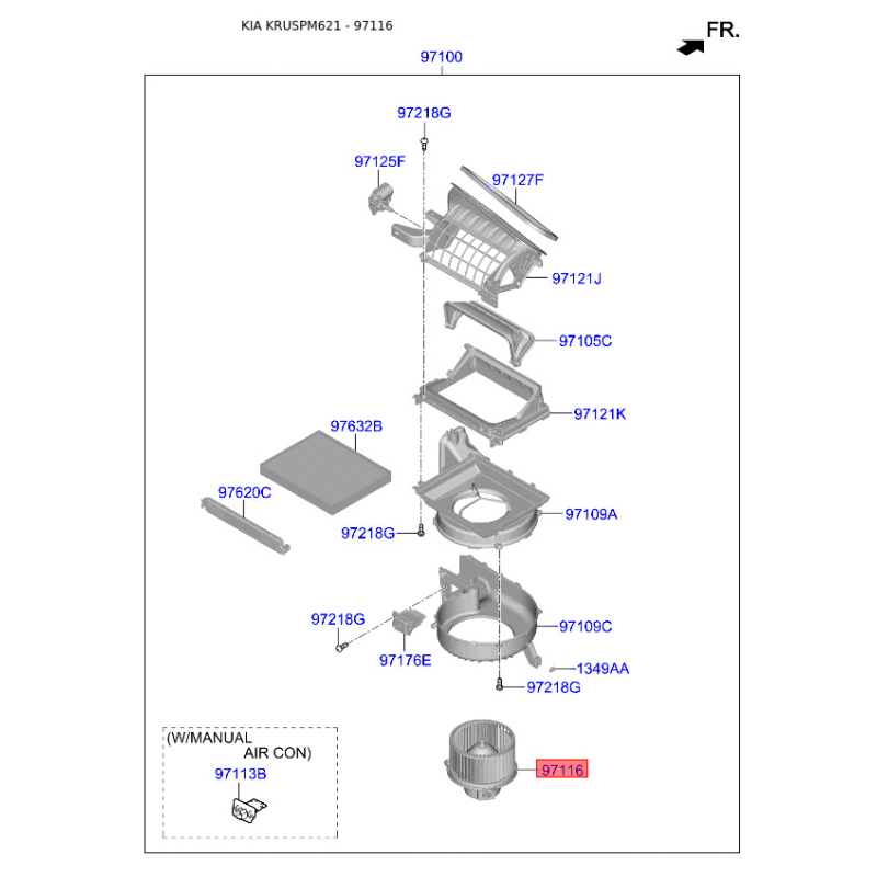 Электродвигатель, вентиляция салона 97113-A4000 Mobis